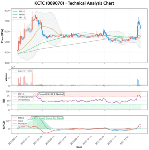 그러나 RSI(14일) 지표는 89.57이라는 매우 높은 수치를 기록하고 있습니다. RSI가 70을 넘으면 과매수 구간으로 판단하는데, 89.57은 단기적으로 주가가 과열되었음을 강력하게 시사합니다. 이는 언제든지 단기적인 차익 실현 매물이 출회될 수 있음을 의미하므로, 신중한 접근이 필요합니다.