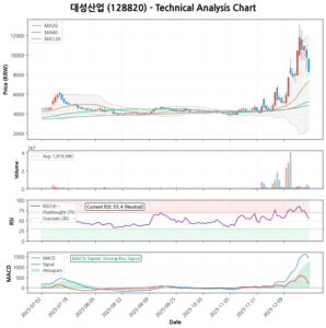 실제로 최근 1개월 수익률은 98.75%, 6개월 수익률은 95.50%에 달하는 폭발적인 상승세를 기록했습니다. 이처럼 단기간에 급등한 주식은 변동성이 커질 수밖에 없습니다. 현재 주가는 단기적으로 지지선 역할을 할 수 있는 MA5(10,878원)와도 상당한 이격이 있어, 조정 시 낙폭이 커질 가능성도 염두에 두어야 합니다. 현재로서는 12,000원 대의 심리적 지지선을 지키는지 여부가 중요하며, 저항선은 현재가 위로 새로운 고점을 탐색해야 하는 상황입니다.