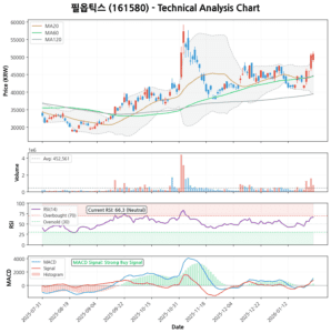 - 리스크 요인: 단기 급등에 따른 피로감, 그리고 전방 산업(디스플레이)의 투자 지연 가능성입니다. 특히 RSI가 높은 상태이니, “오늘 당장 몰빵”보다는 “떨어질 때마다 줍줍”하는 전략을 추천합니다.
