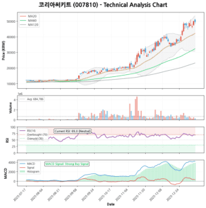 – RSI와 MACD의 강한 매수 신호 및 이동평균선 정배열 추세를 바탕으로 단기 상승 여력이 충분하다고 판단됩니다. 최근 형성된 고점대를 돌파 시도할 것으로 예상됩니다.