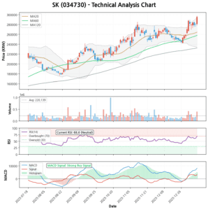 - 이동평균선: 5일 > 20일 > 60일 > 120일 이평선이 부채꼴처럼 쫙 펴진 ‘완벽한 정배열’ 상태입니다. 이는 주가가 아주 강력한 상승 추세에 있다는 뜻이며, 쉽게 꺾이지 않을 에너지를 가지고 있습니다.